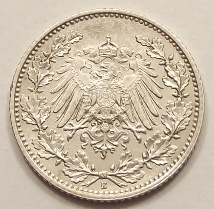 1/2 márka 1916 F Német Birodalom , kiváló állapotban.
