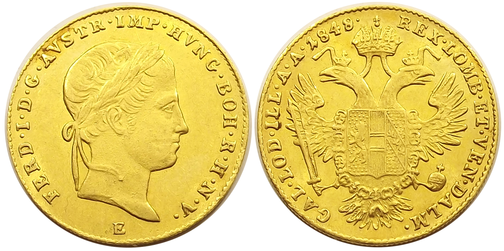 1 dukát 1848 E V. Ferdinánd (Gyulafehérvár), nagyon szép állapotban.