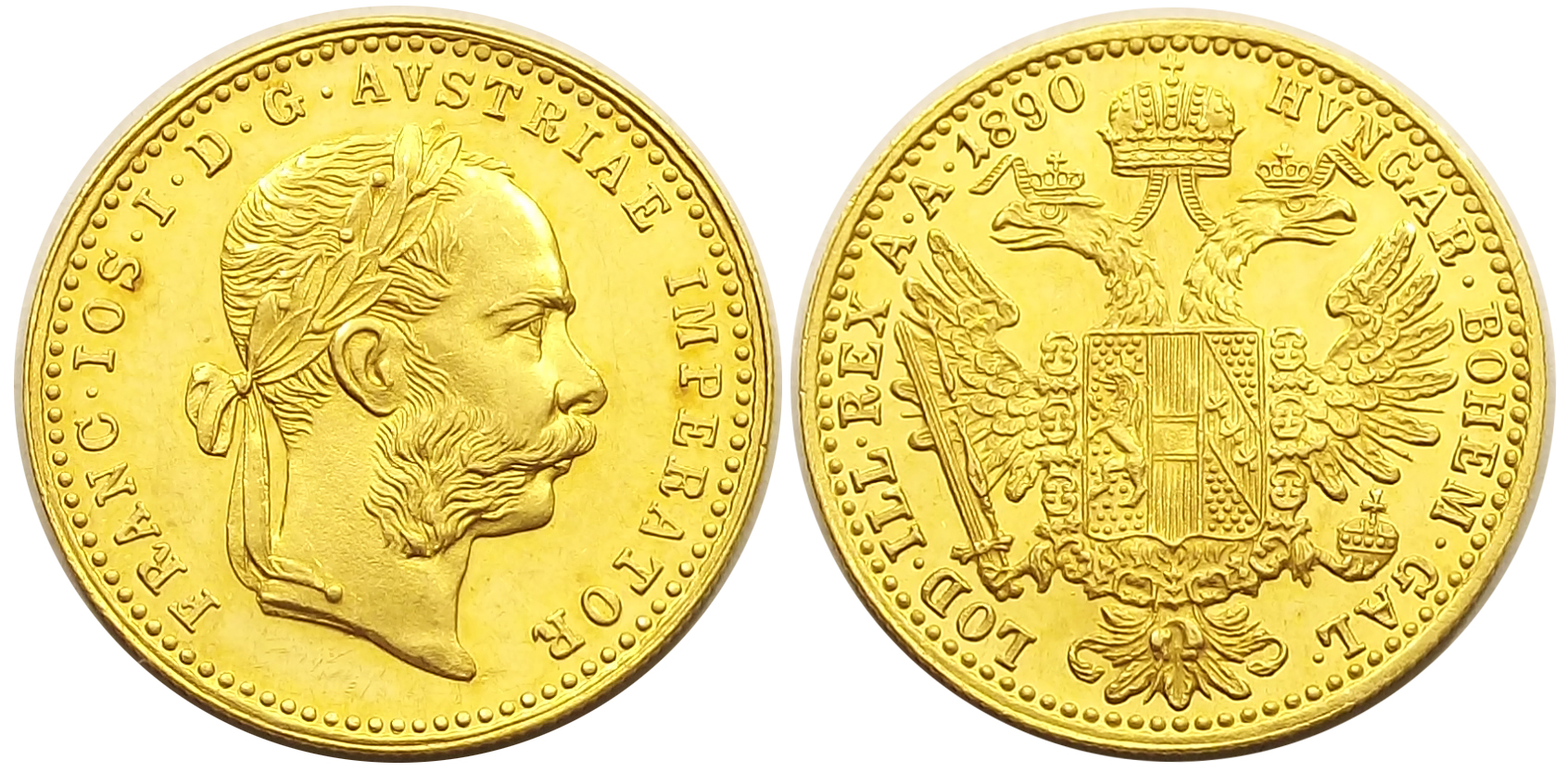 1 dukát 1890 Ferenc József extra állapotban, éles portréval és címerrel, verdefénnyel (h