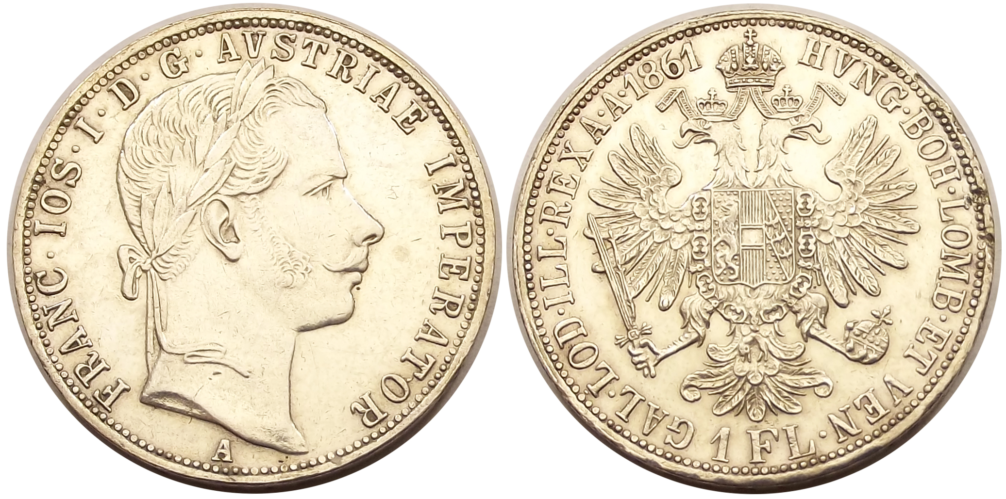 1 florin 1861 A Ferenc József kiváló állapotban, apró peremhibák (vg