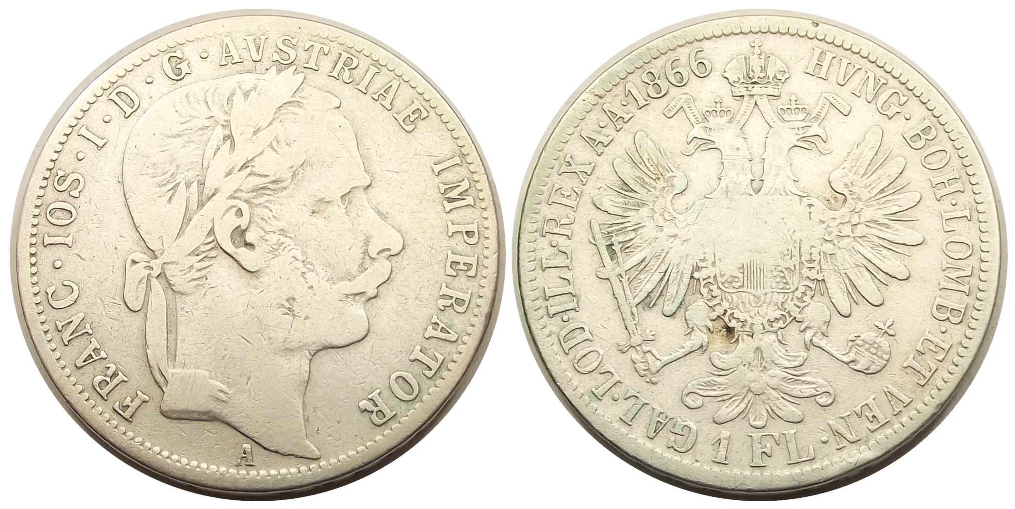 1 florin 1866 A Ferenc József használt állapotban. Ritka darab. (baj.