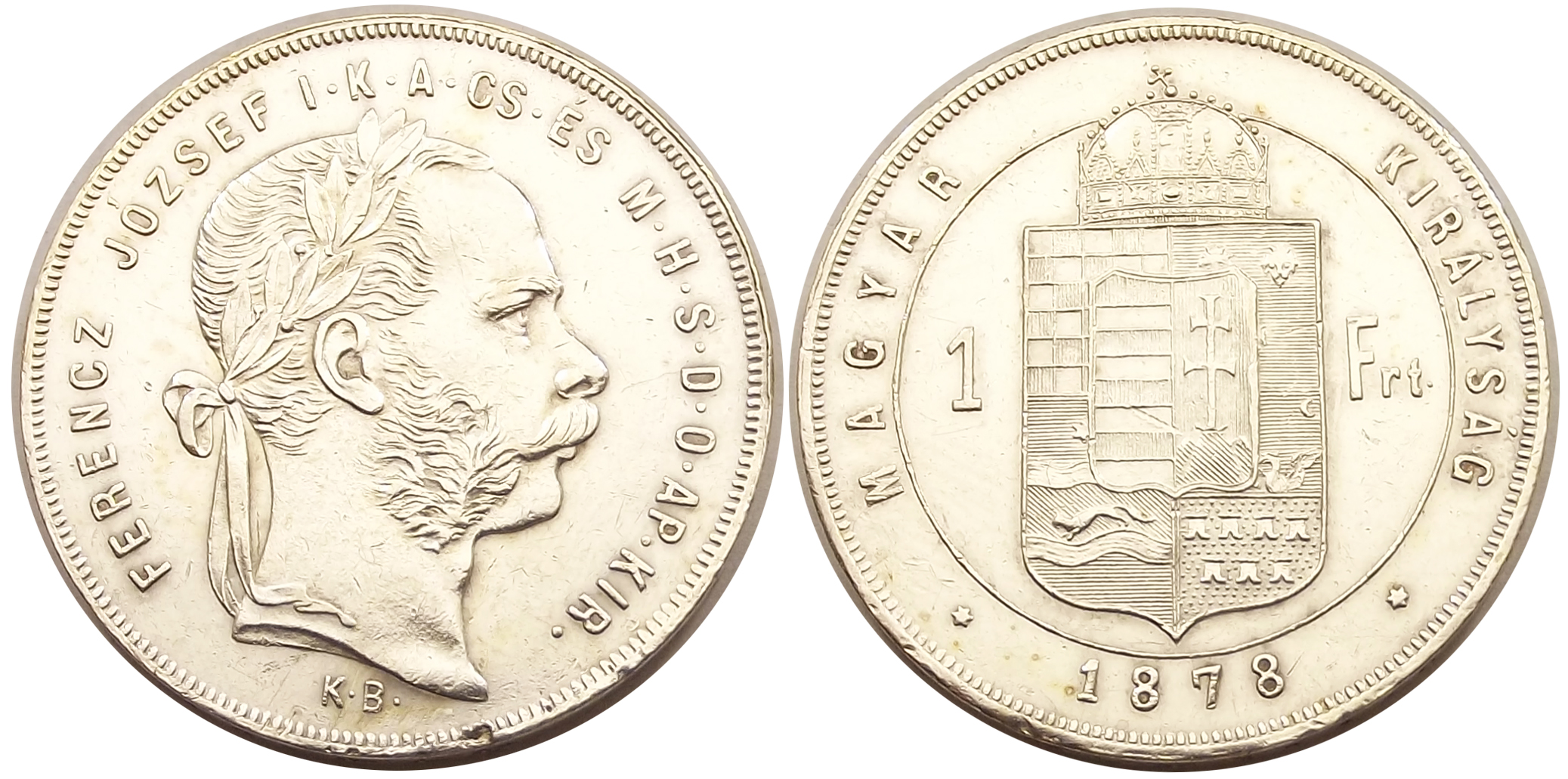 1 forint 1878 KB Ferenc József nagyon szép állapotban, tisztítás az érmén (vg