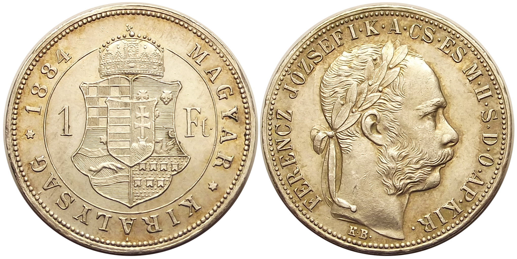 Ezüst 1 forint 1884, Ferenc József portréjával, kiváló állapotban. (b