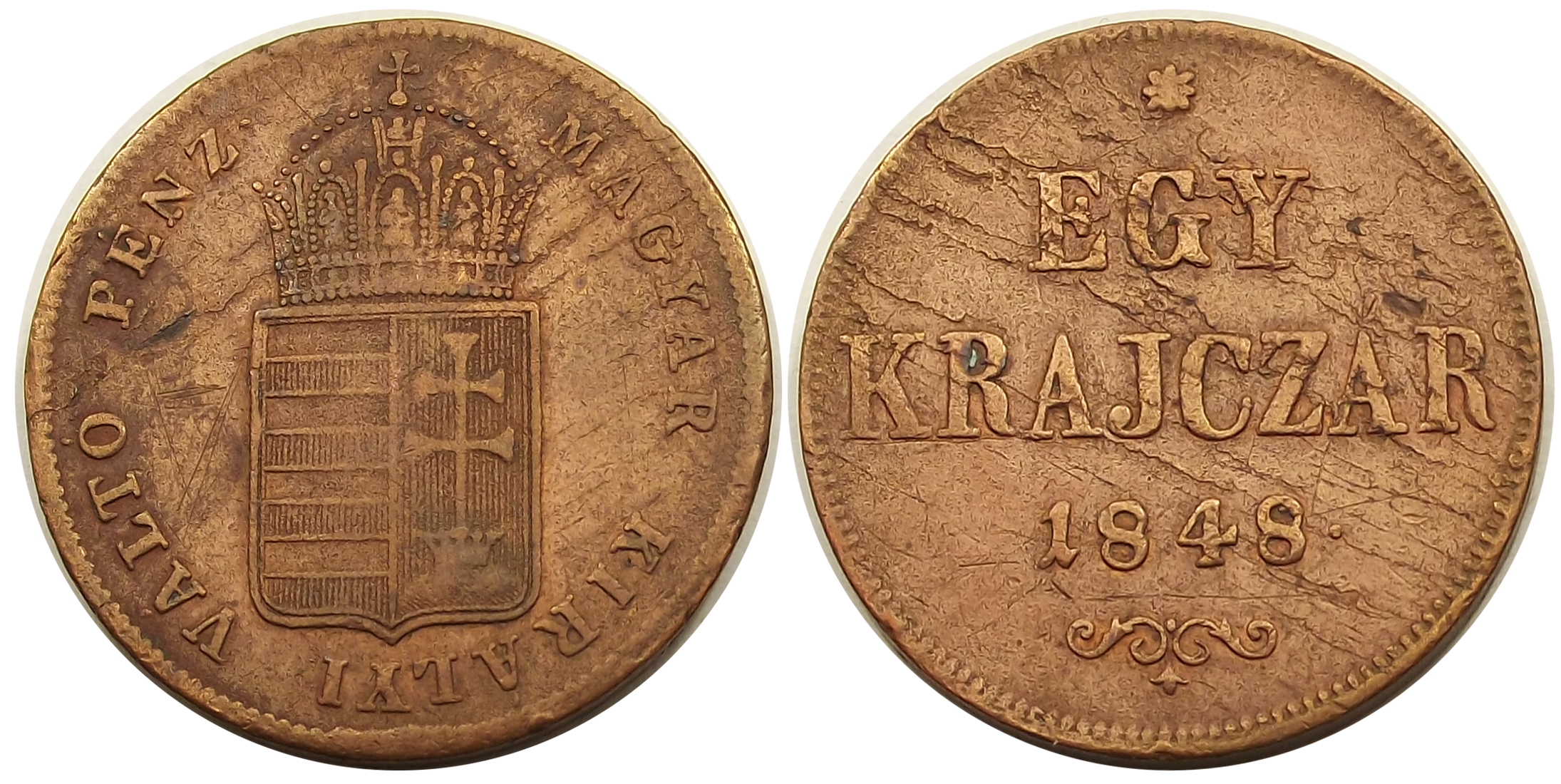 Szabadságharc réz 1 krajcár 1848, szép állapotban (gyt
