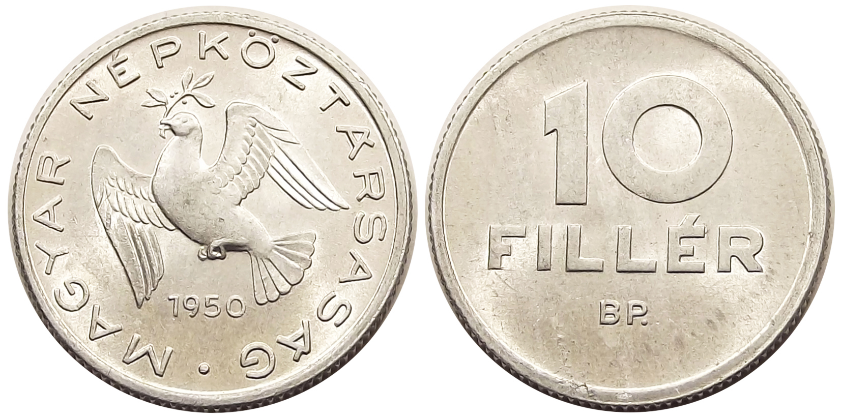 Ritka 10 fillér 1950 Magyar Népköztársaság, kiváló állapotban, szépen kivehető verdefénnyel. Ebben a tartásban igen ritka.