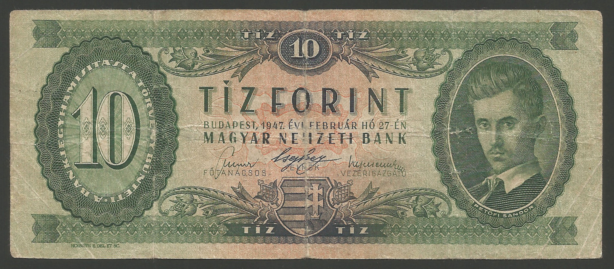 10 forint 1947 Kossuth címer, használt eredeti állapotban. (sf