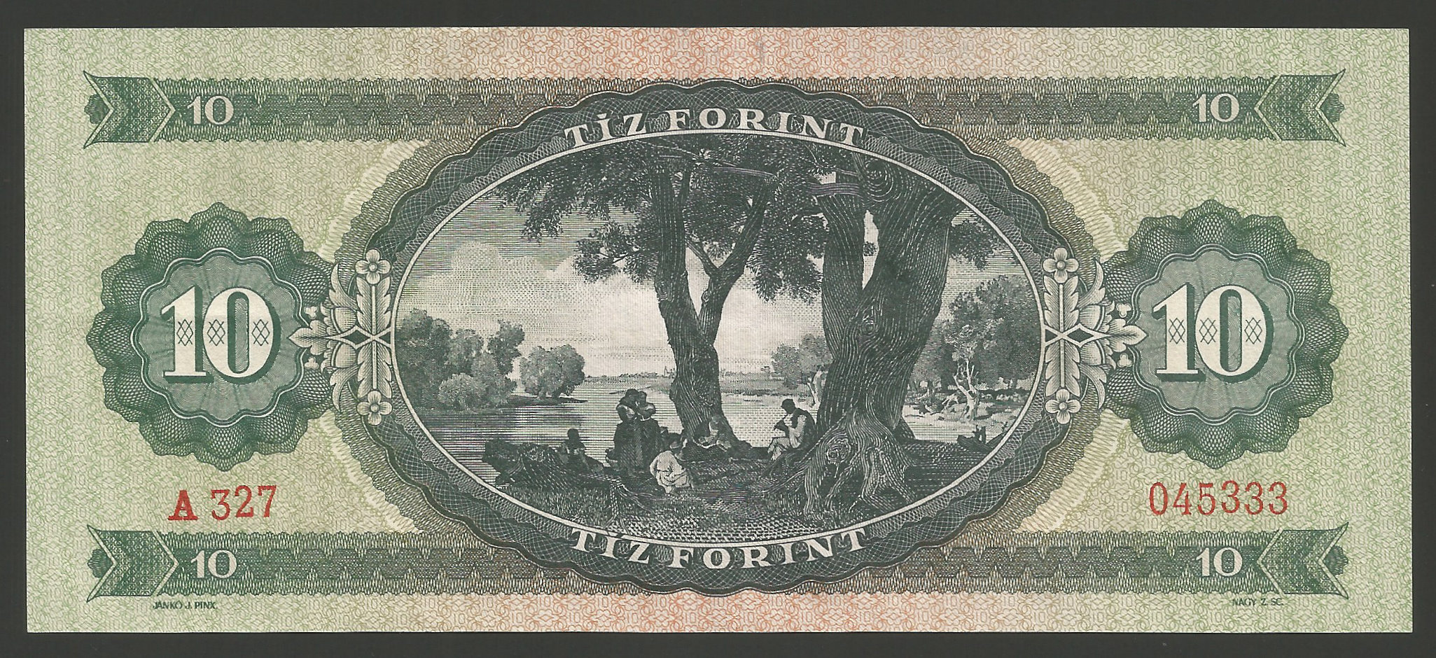 10 forint 1957 kiváló állapotban, nagyon enyhe hajlás középen (nincs megtörve a papír), erős ropogós papír (g
