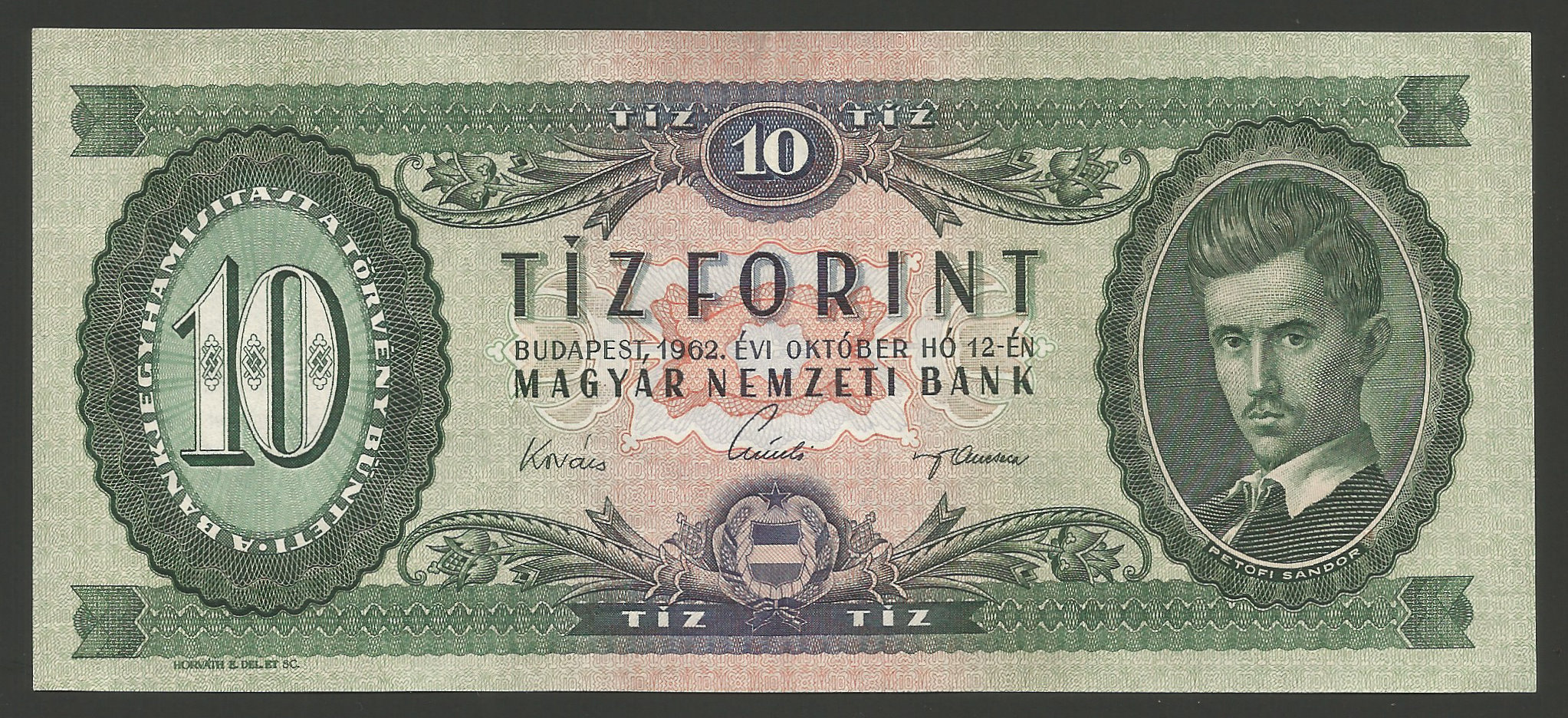 10 forint 1962 kiváló állapotban, egyetlen gyenge hajtással (g