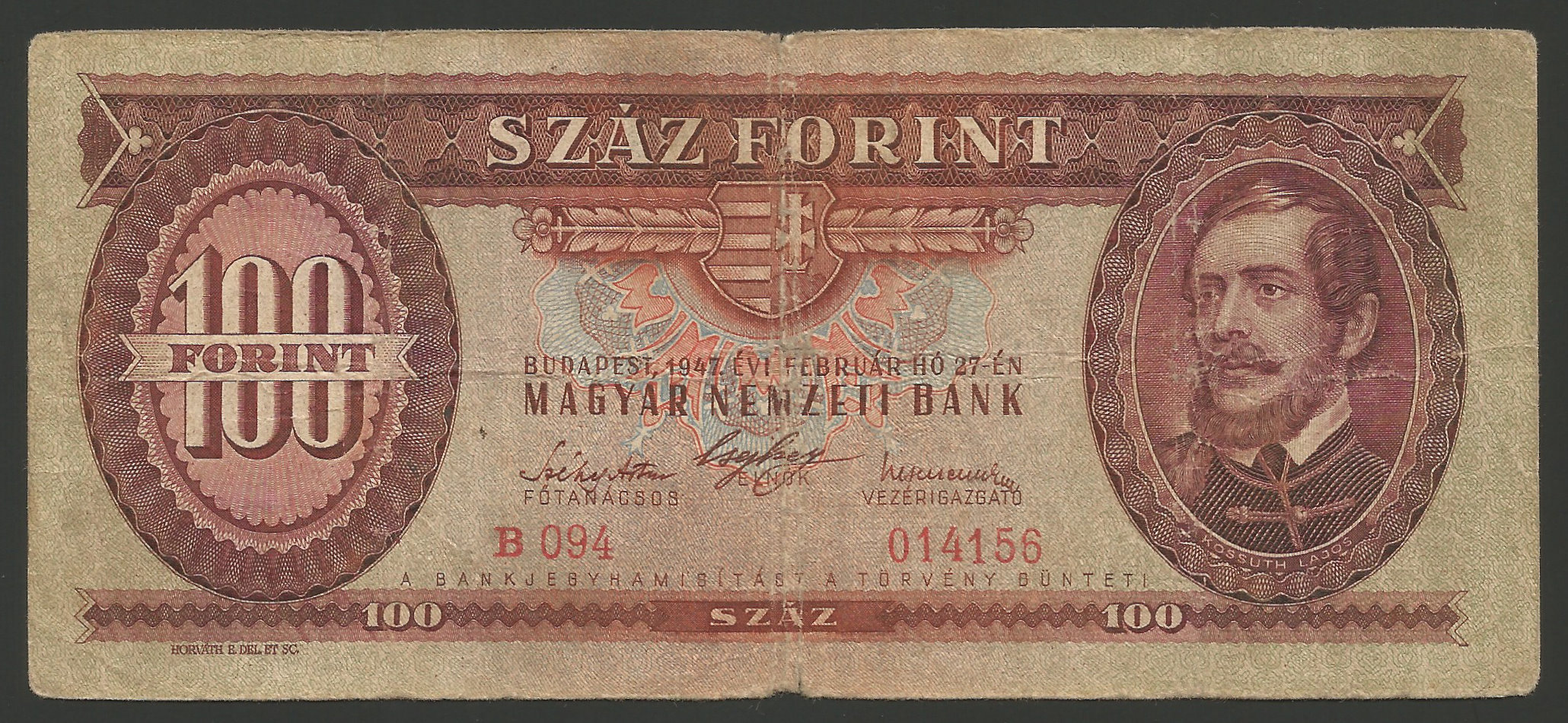 100 forint 1947 szép eredeti állapotban. Ritkább darab. (mt