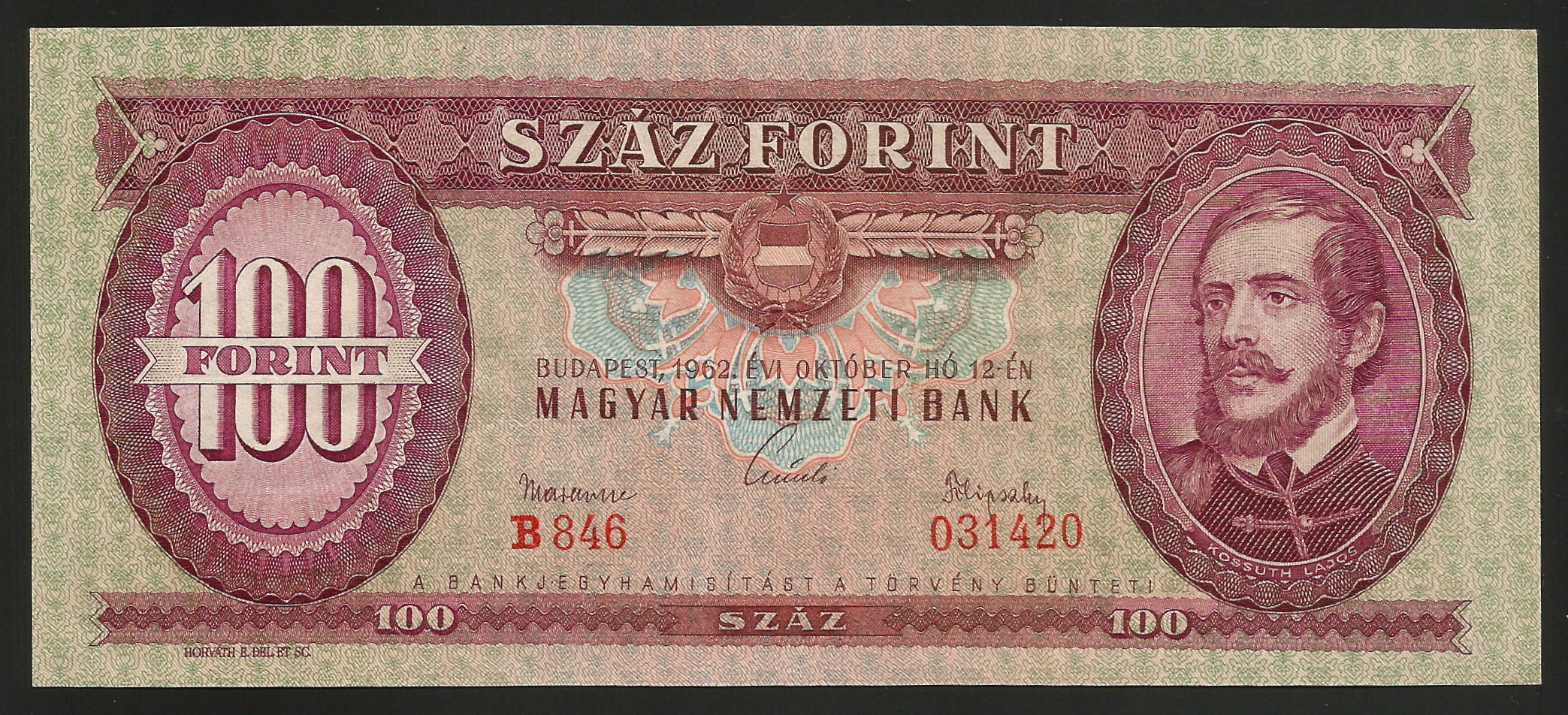 100 forint 1962 kiváló állapotban, enyhe hajtásokkal, erős ropogós papírral (g
