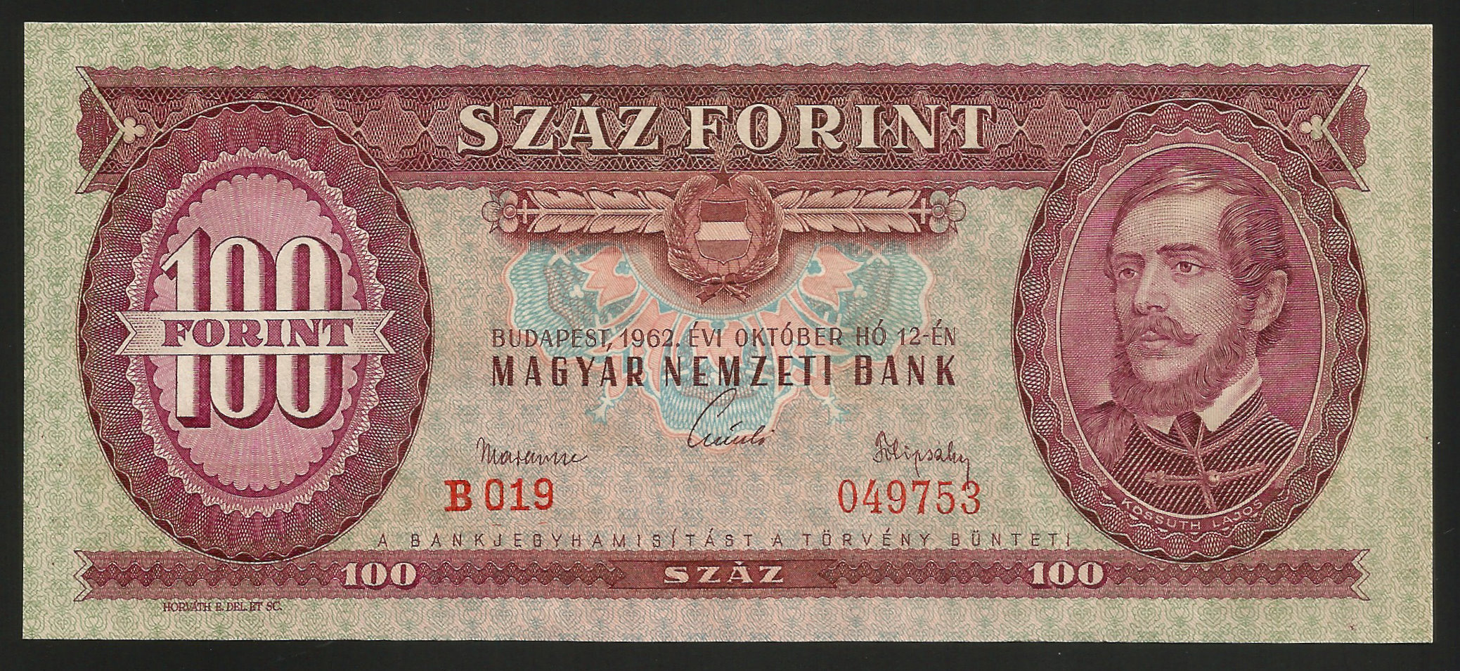 100 forint 1962