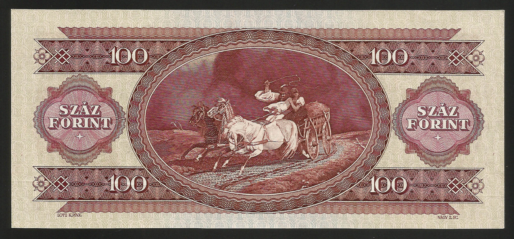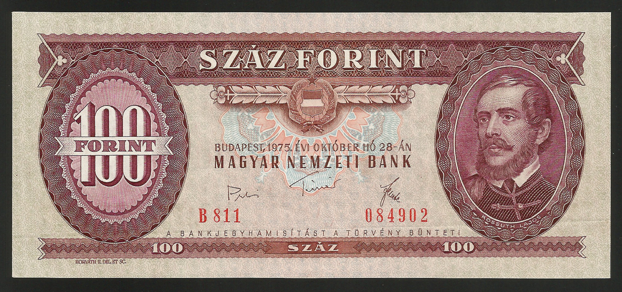 100 forint 1975 bankfriss hajtatlan állapotban, keresztben gyári papírránc a bankjegyen (g