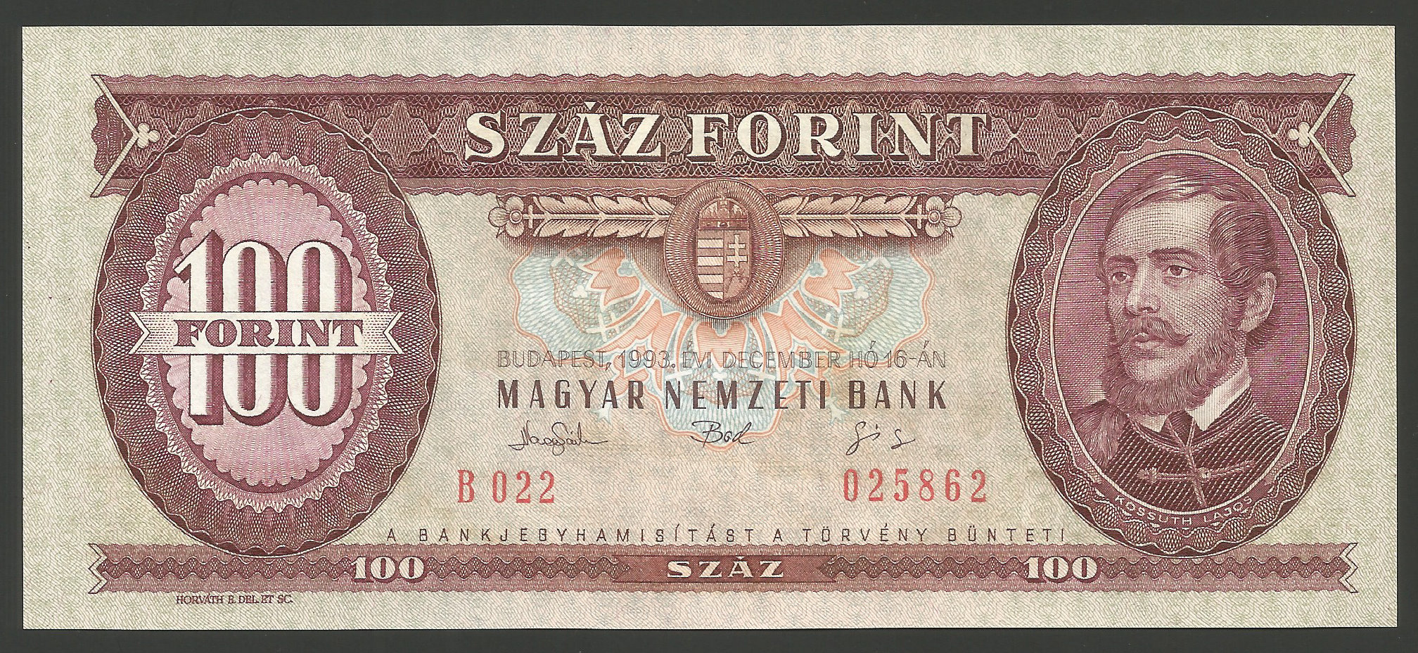 100 forint 1993 kiváló hajtatlan állapotban. (sza
