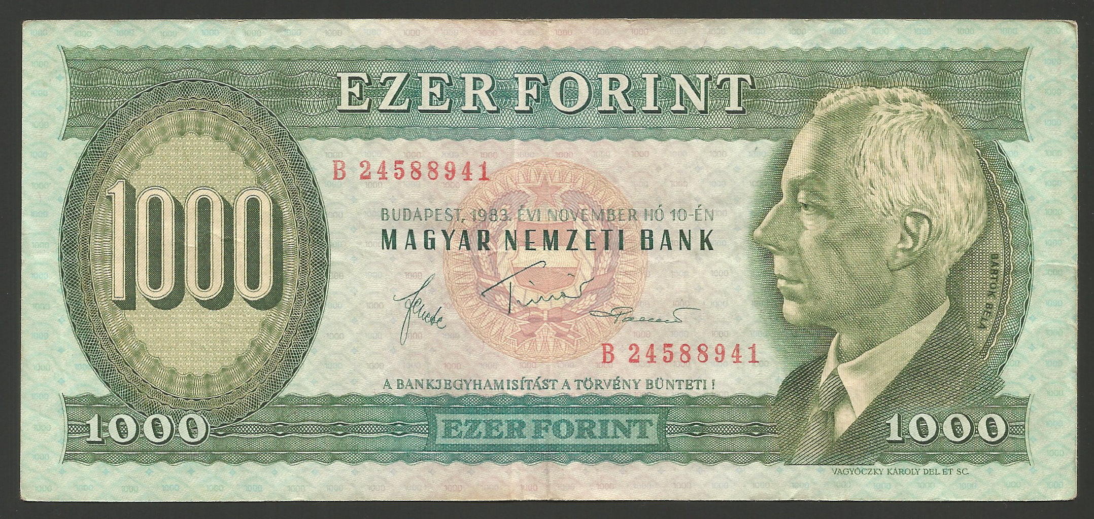 1000 forint 1983 B szép állapotban, több hajtással, papírgyűrődésekkel (dj