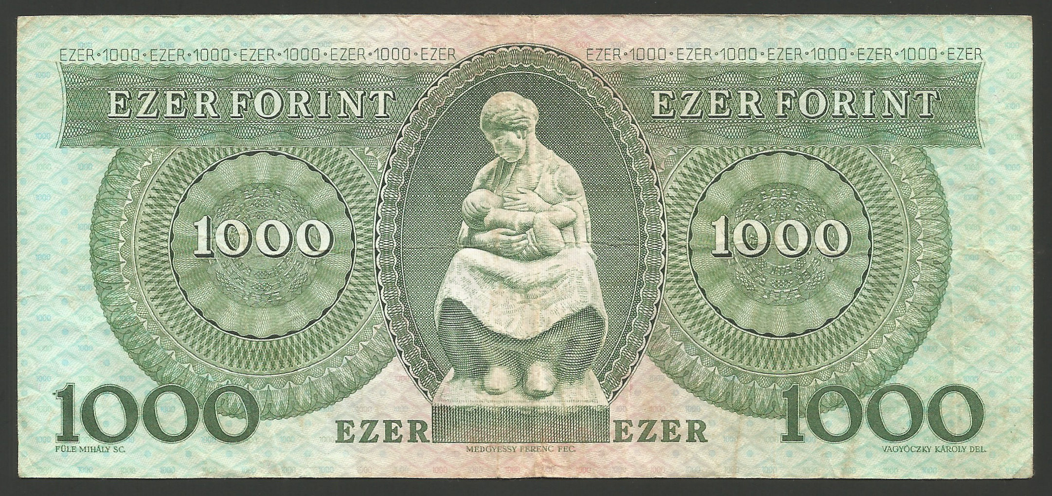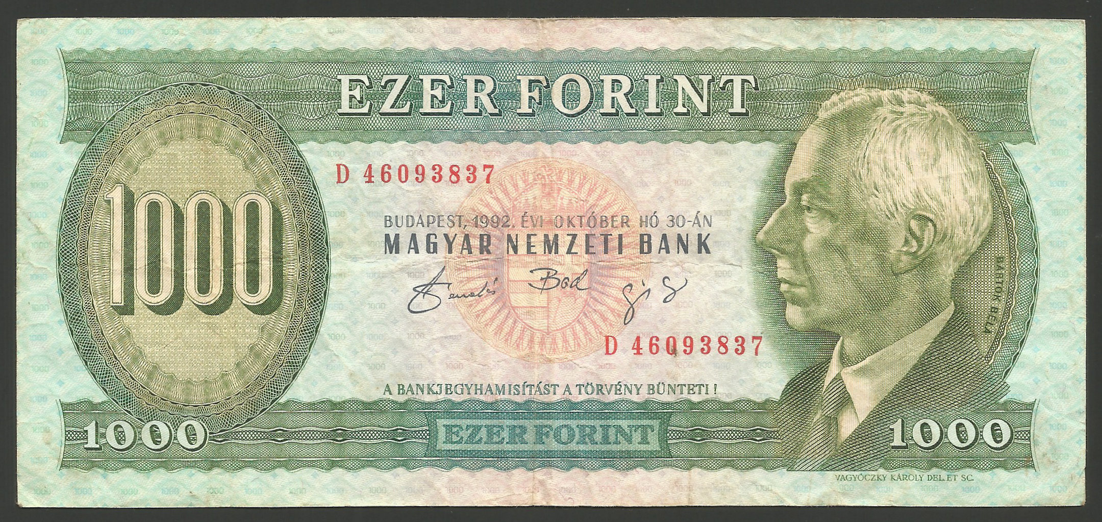 1000 forint 1992 D használt eredeti állapotban, hajtásokkal, papírgyűrődésekkel, szép papírral (ká