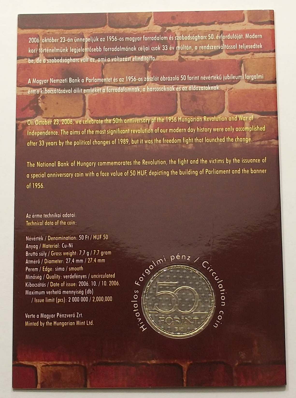 1956 – 2006 50 Forint első napi veret, kiváló állapotban (ti