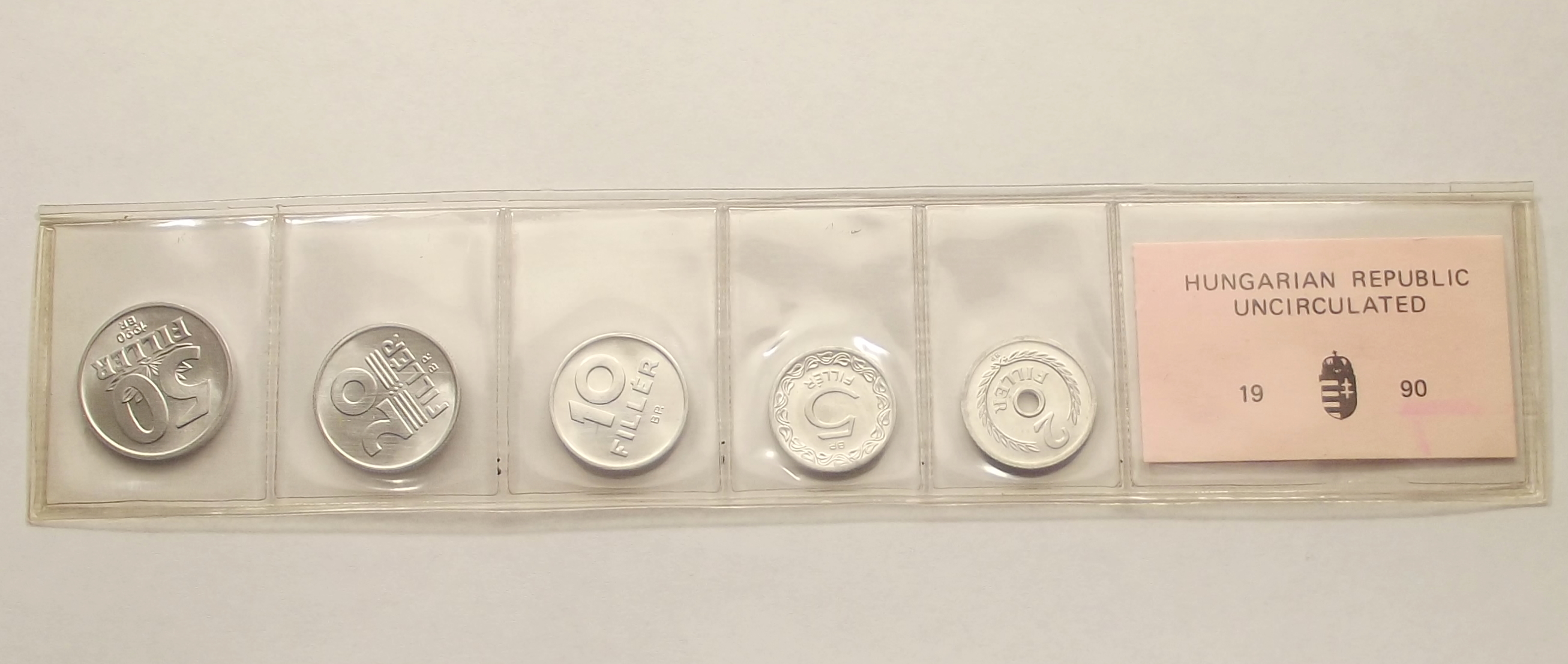 1990 fillér fóliás forgalmi sor, kiváló állapotban (igá