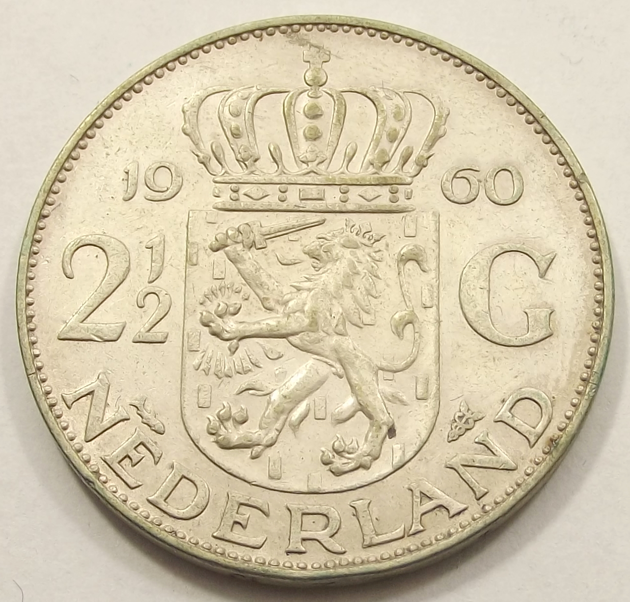Ezüst 2 1/2 gulden 1960 Hollandia, szép állapotban (jz
