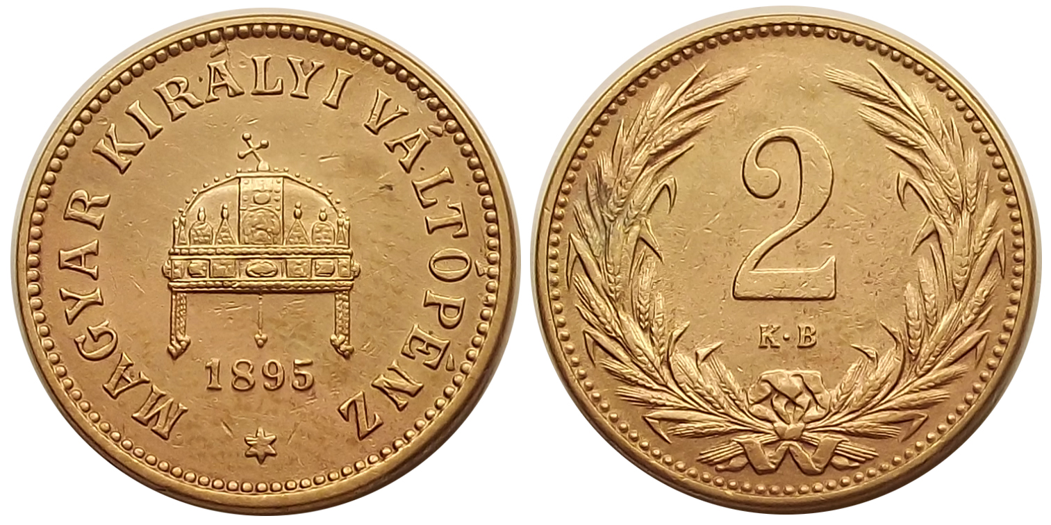 2 fillér 1895 Ferenc József, nagyon szép állapotban. Enyhe tisztítás az érmén (o l