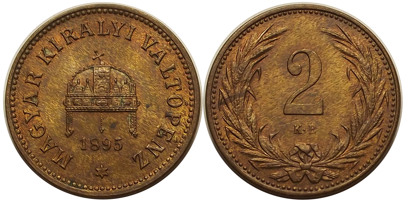 Réz 2 fillér 1895, kiváló állapotban. (b