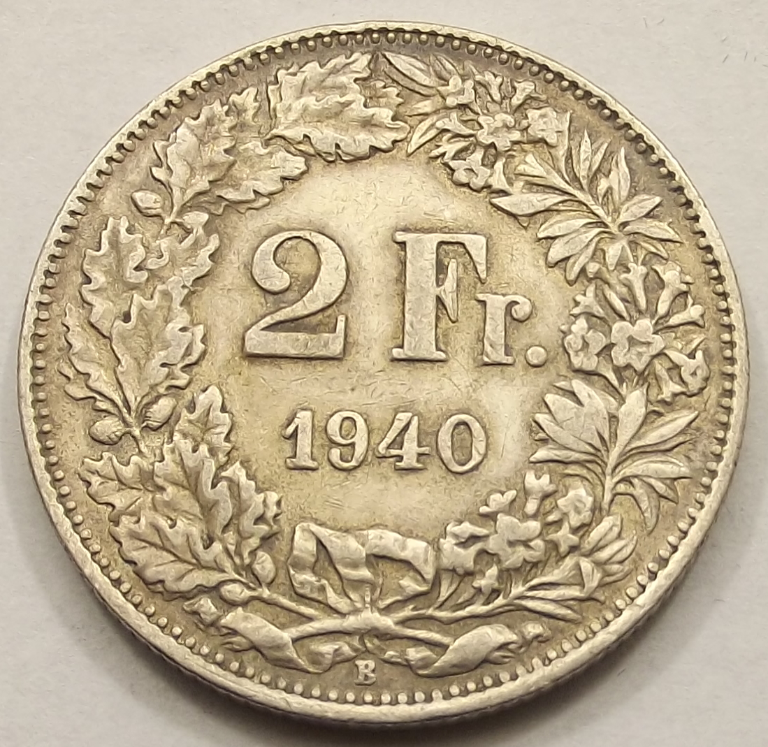 2 frank 1940 B Svájc, nagyon szép állapotban (gyt