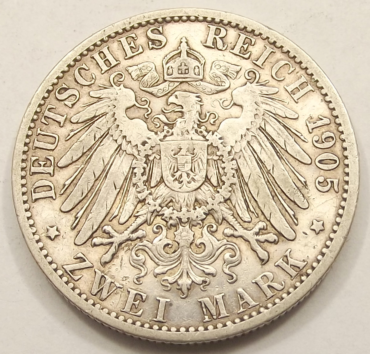 2 márka 1905 A Poroszország, szép tartásban, peremhiba (lsz