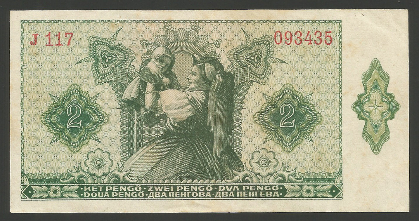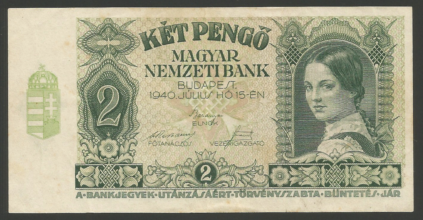 2 pengő 1940 nagyon szép állapotban, középen hajtással, papírgyűrődésekkel, erős papírral (mt