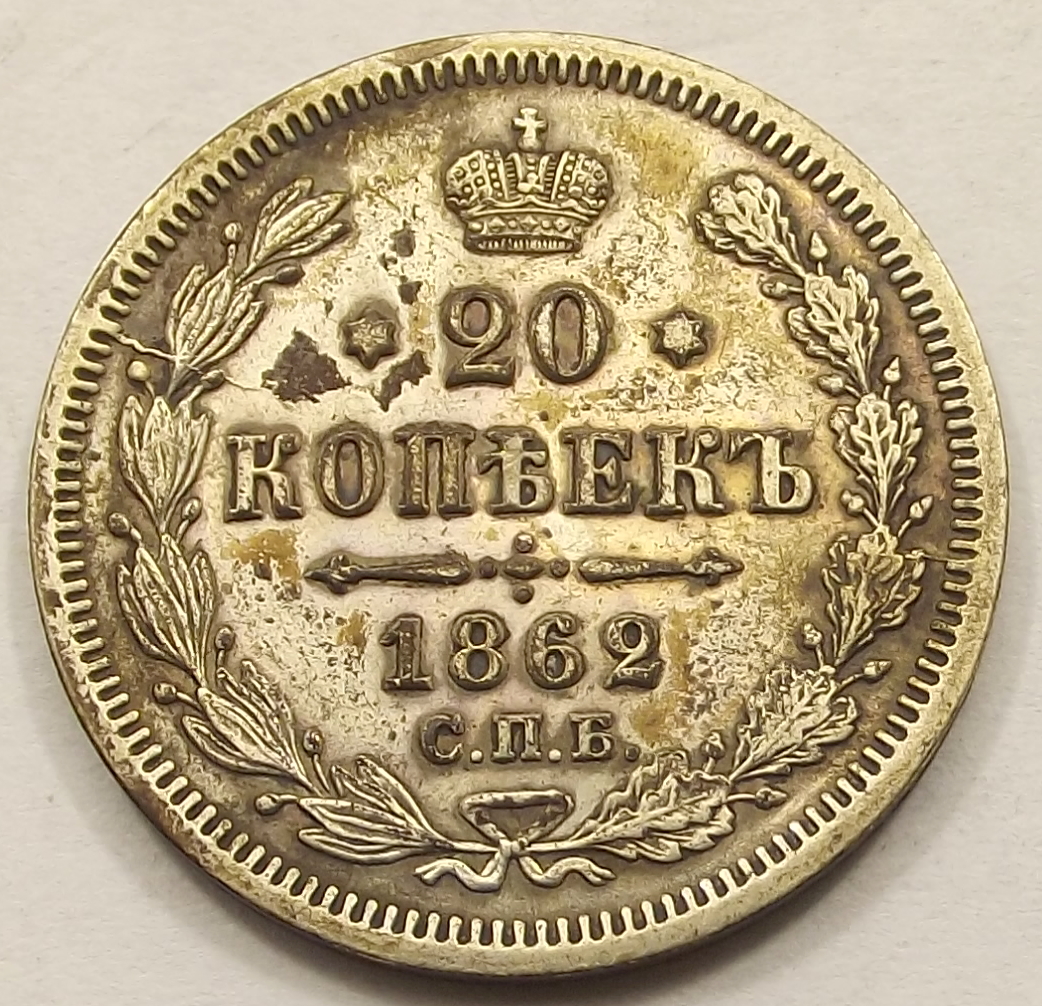 20 kopek 1862 Oroszország, szép állapotban (lsz