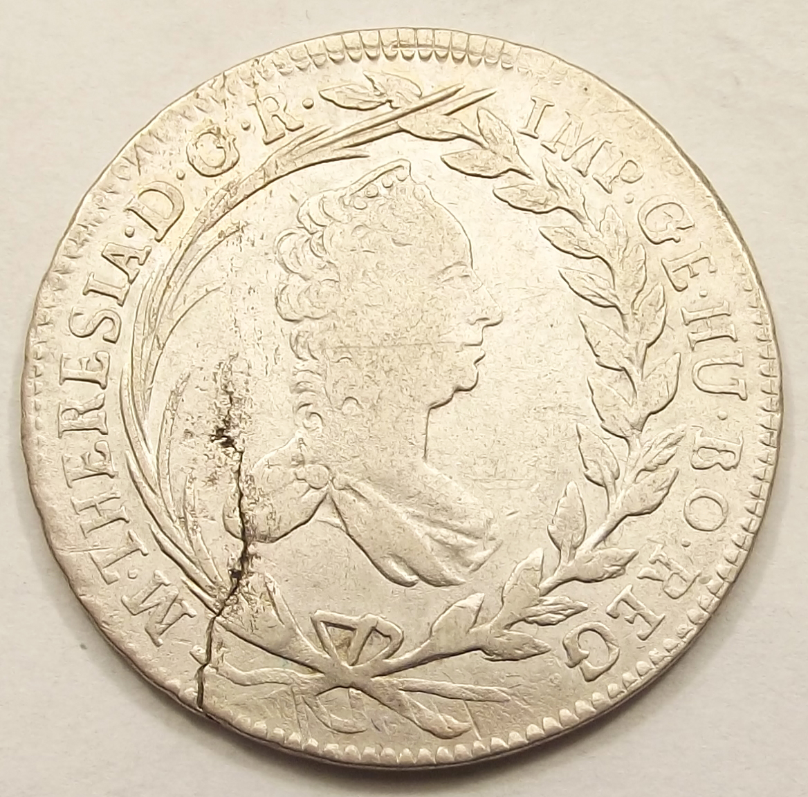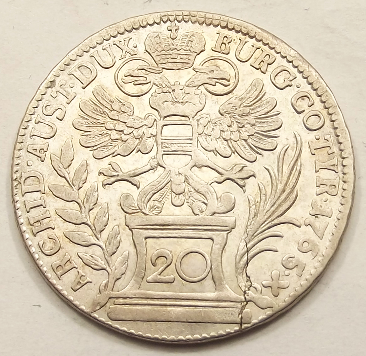 20 krajcár 1765 Mária Terézia, szép állapotban, repedés az érmén. (baj