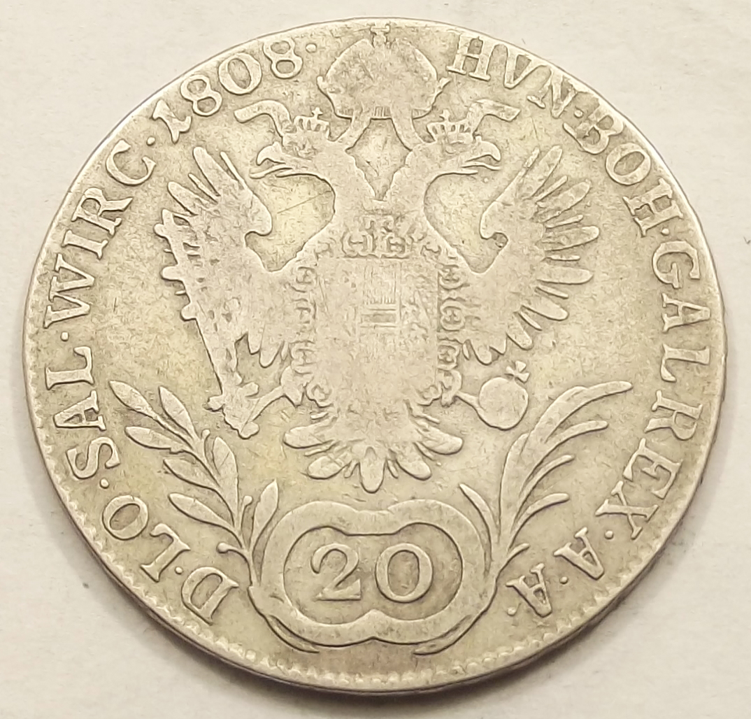 20 krajcár 1808 D I. Ferenc, szép állapotban. (baj.