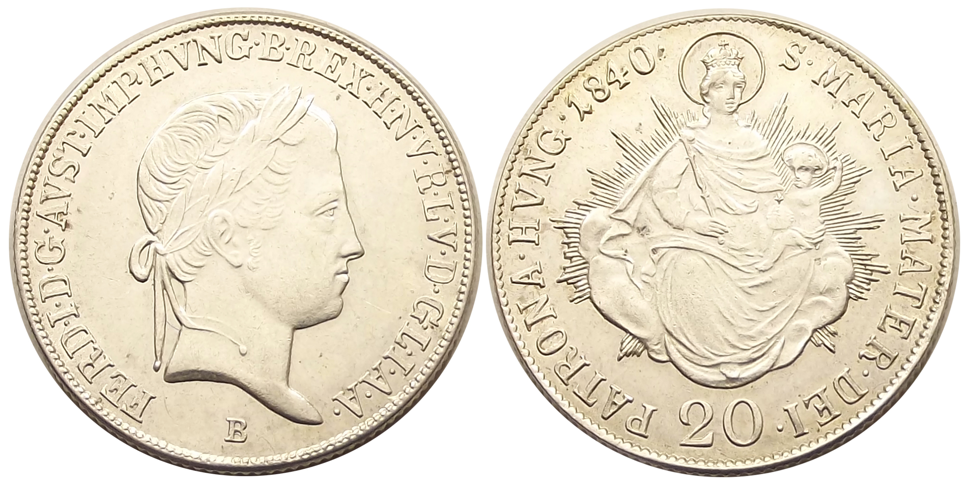 20 krajcár 1840 B V. Ferdinánd kiváló állapotban, éles portréval (dcs