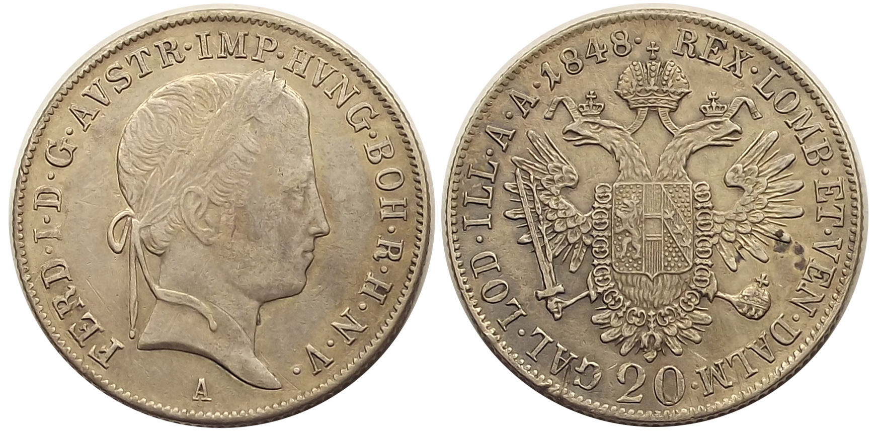 20 krajcár 1848 A V. Ferdinánd