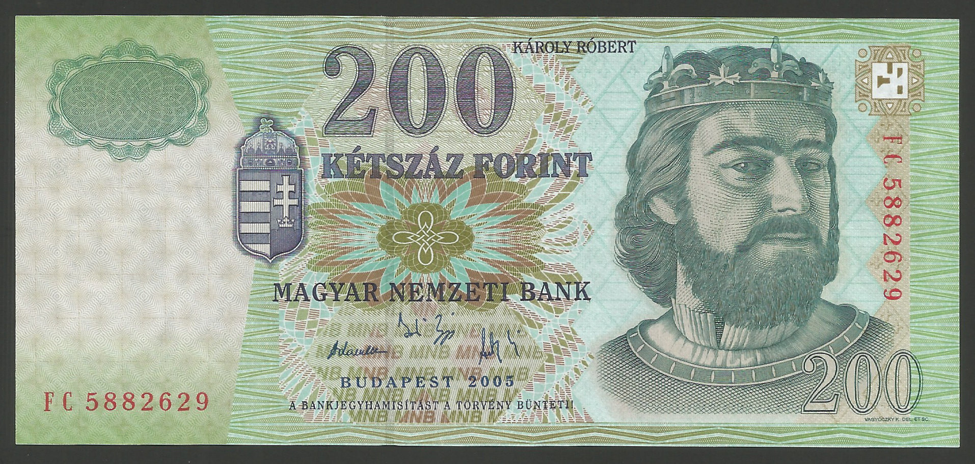 200 forint 2005 FC hajtatlan állapotban, enyhe gyűrődés a bankjegyen (sf