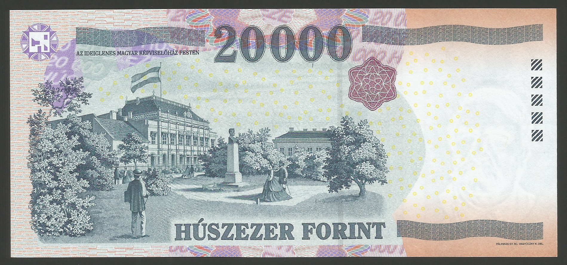20000 forint 2009 GC hajtatlan állapotban. Enyhe vízszintes nyomódások a papíron, bankautomata nyoma. (sf