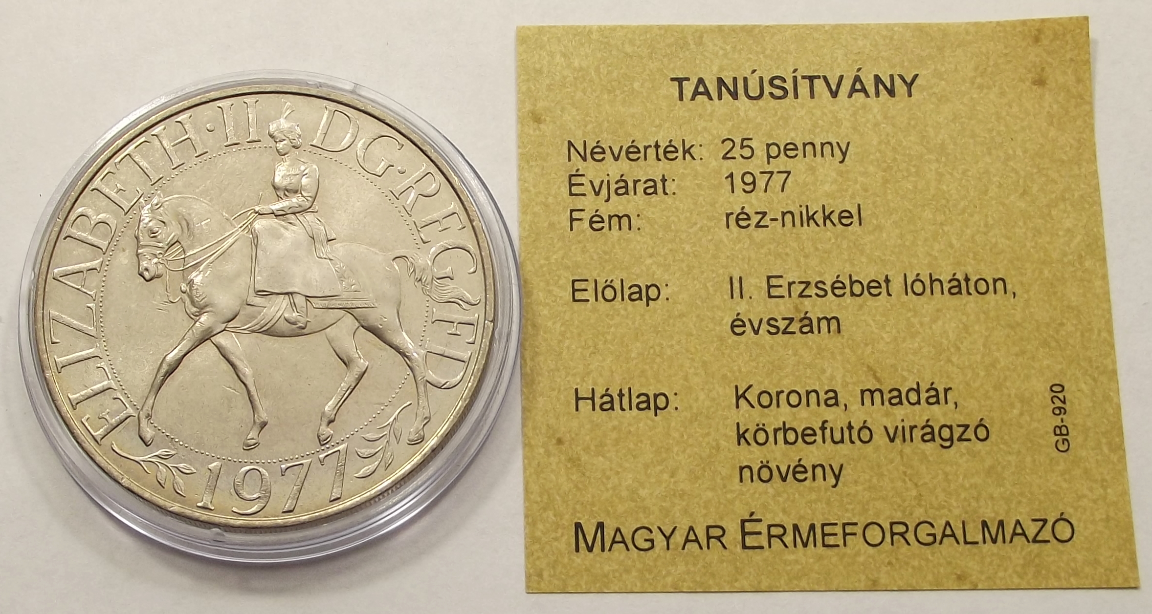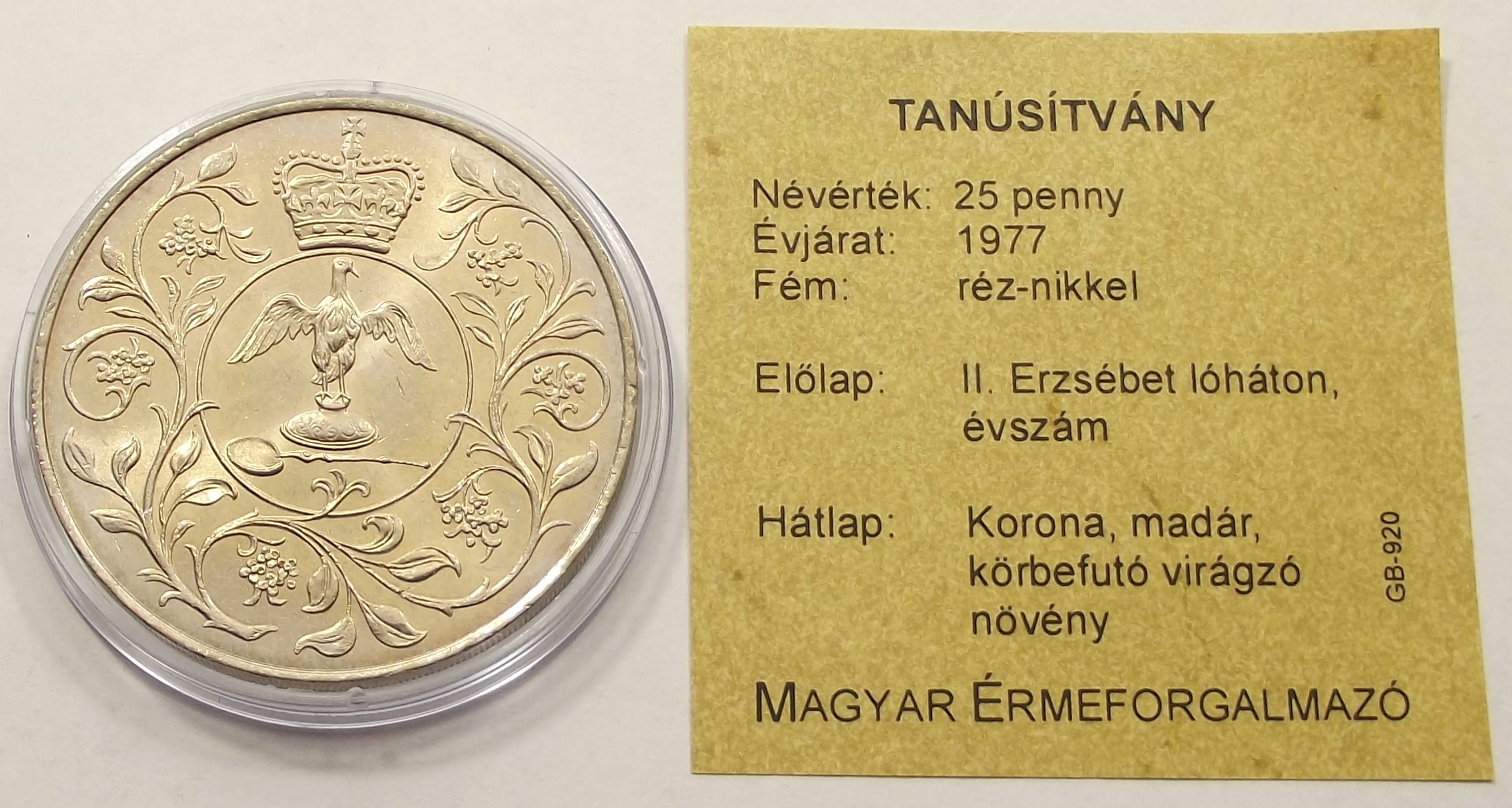 25 penny 1977 Anglia kiváló állapotban, certificate-el (ti