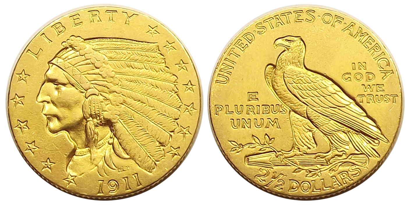 Indián fejes arany 2 1/2 dollár 1911 USA, szép állapotban..