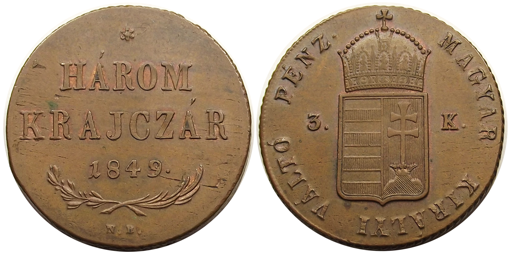 Réz 3 krajcár 1849 NB Szabadságharc nagyon szép állapotban. (os