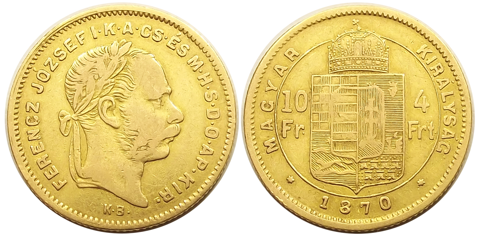 4 forint 1870 KB Ferenc József, eredeti használt állapotban. (mt