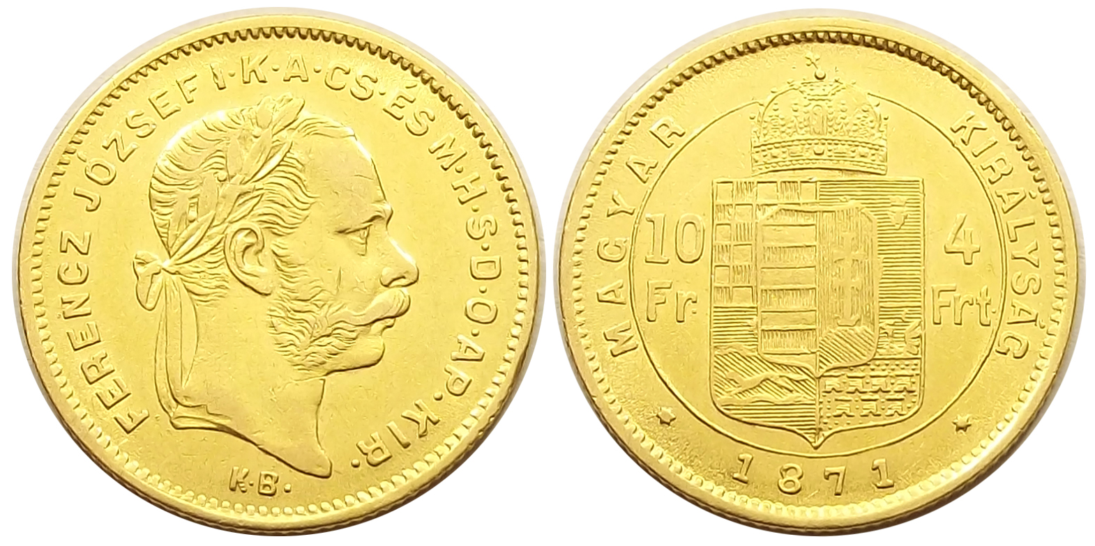 4 forint 1871 Ferenc József, nagyon szép állapotban. (mr