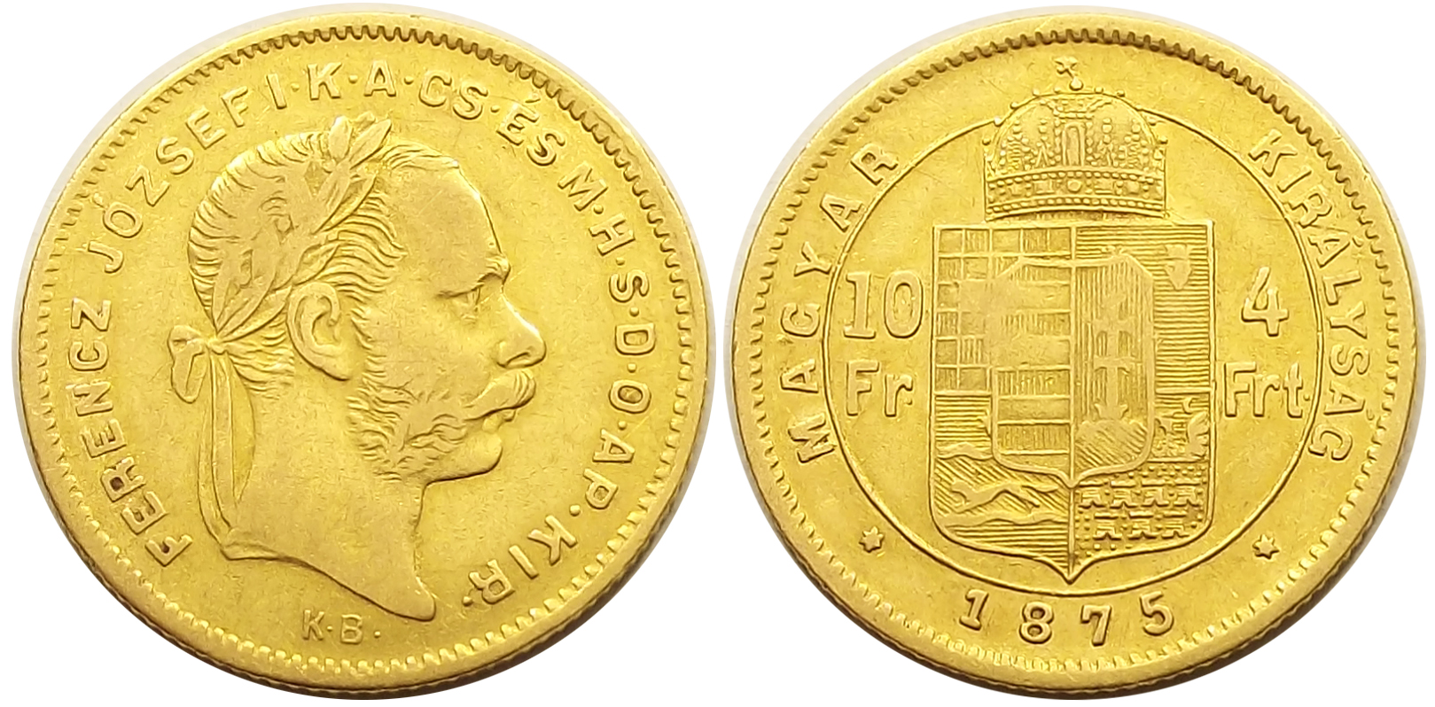 4 forint 1875 KB Ferenc József, eredeti szép állapotban. Ritka évjárat, mindössze 10.682 darab készült (mt
