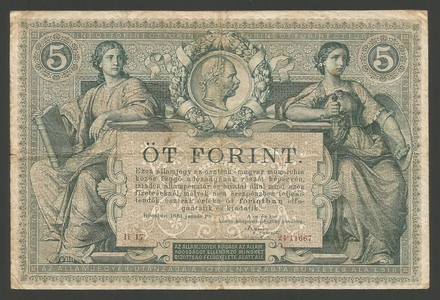 5 forint 1881 szép állapotban, eredeti tartásban (d