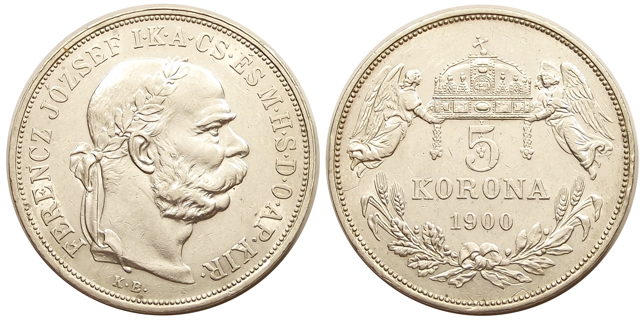 Ezüst 5 korona 1900 Ferenc József, nagyon szép tartásban. (hl