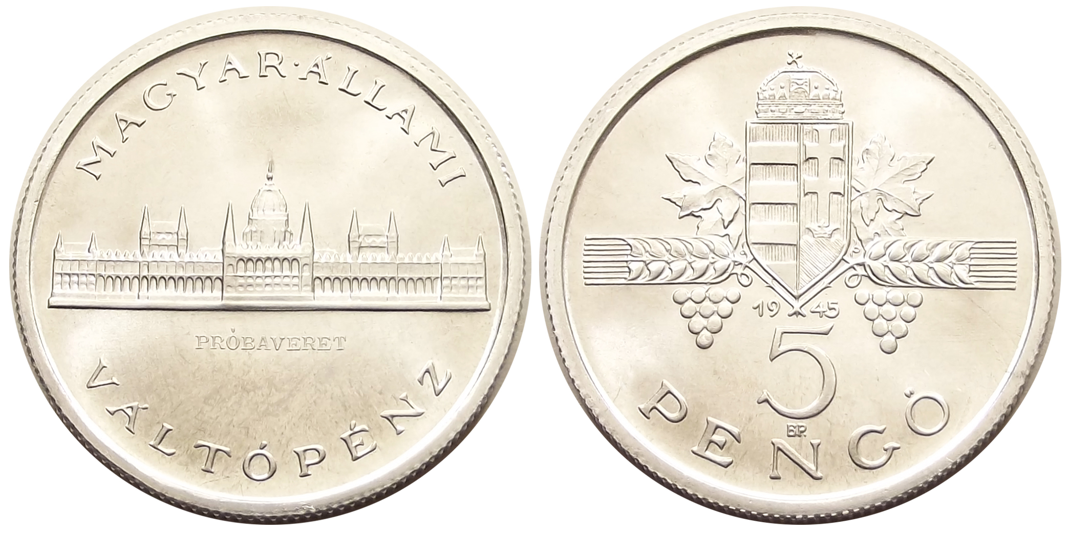 5 pengő 1945 Próbaveret