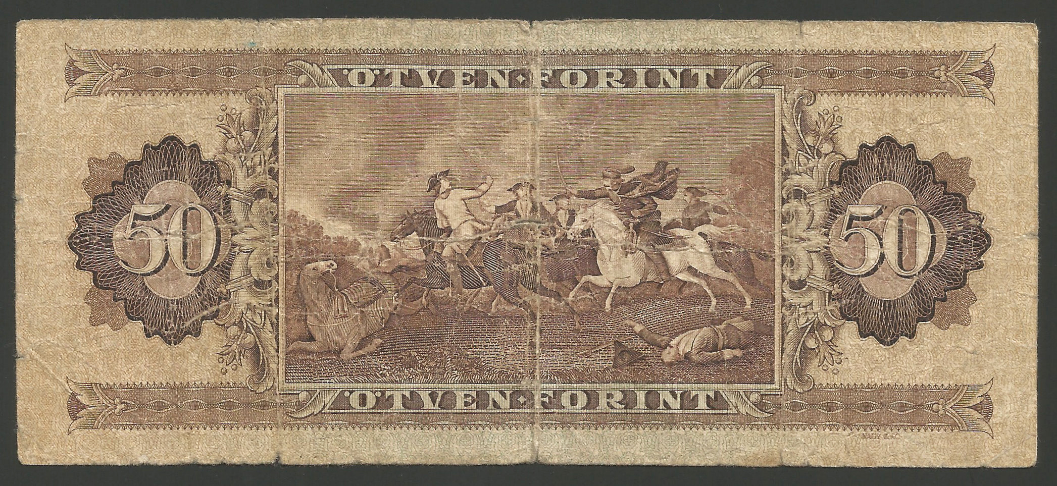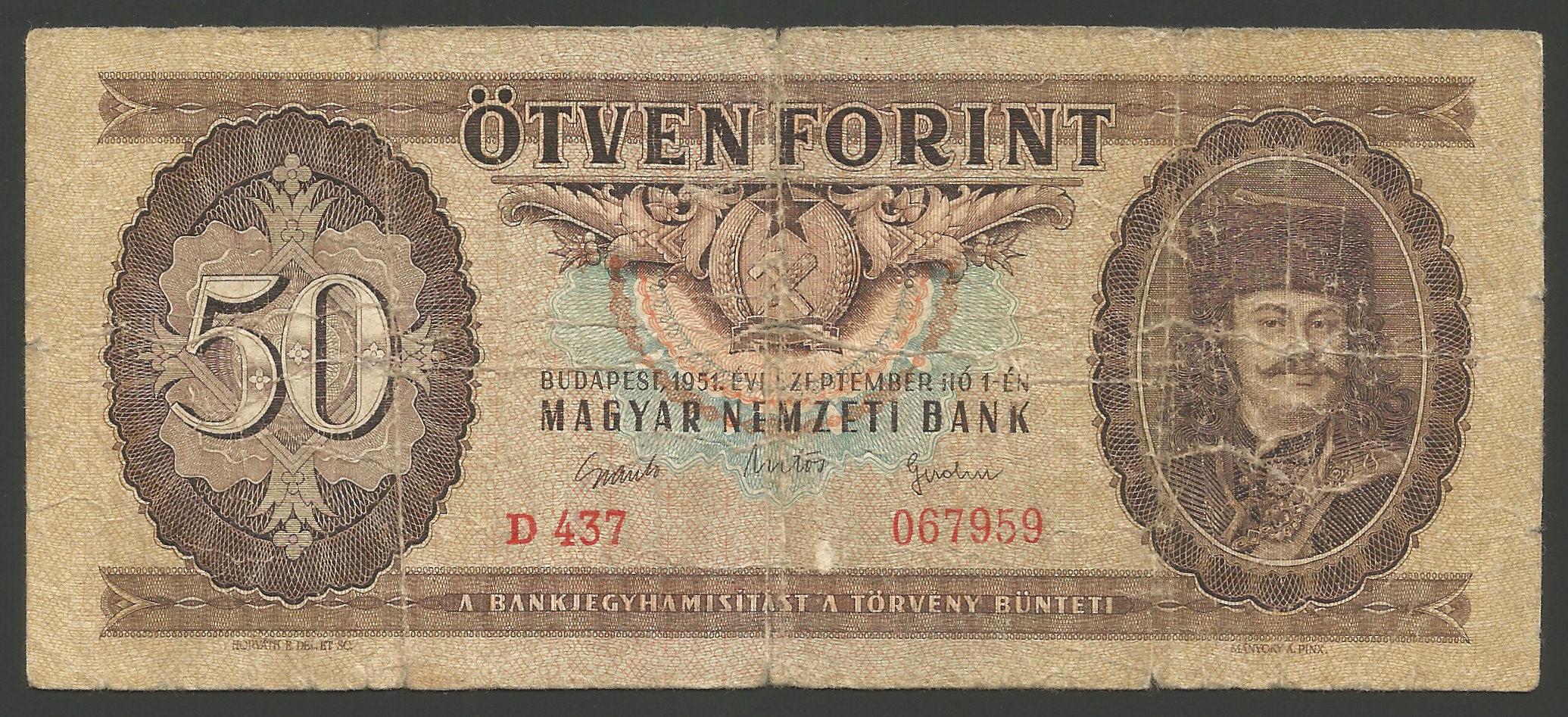 50 forint 1951 (Rákosi címer) eredeti, erősen használt állapotban. Ritka évjárat! (tel