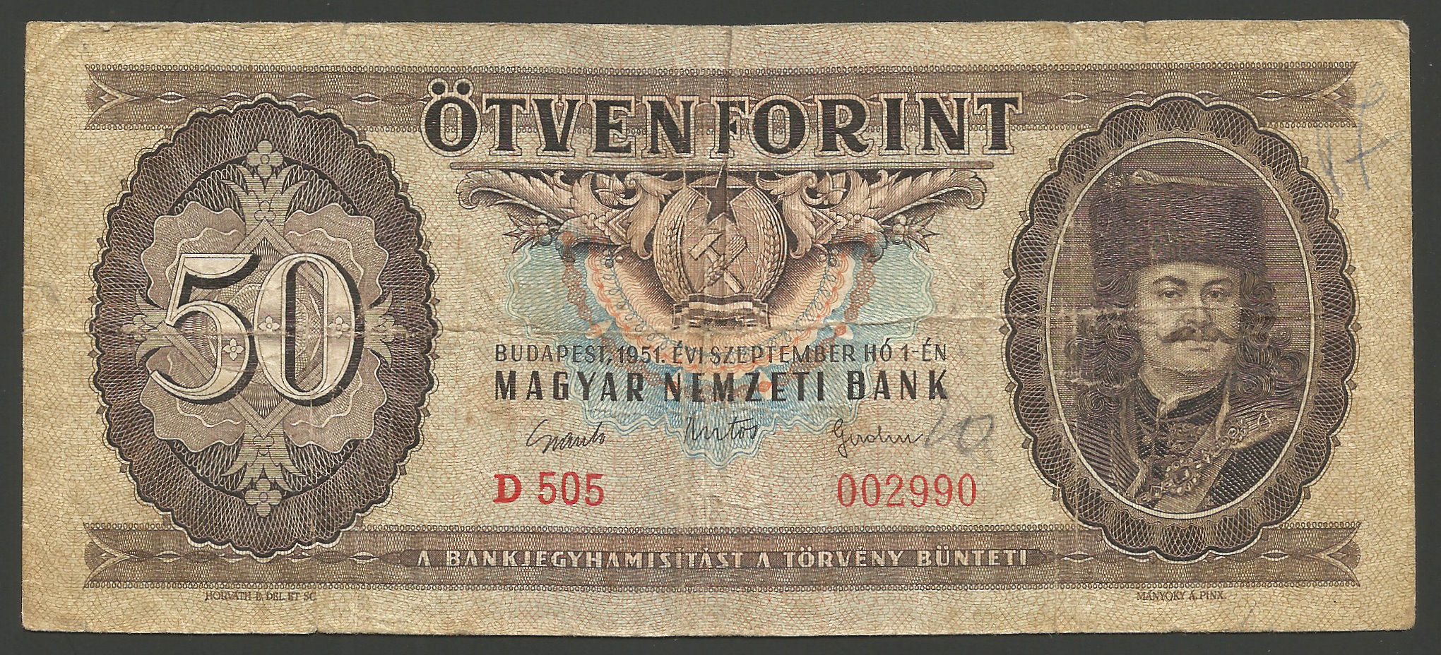 50 forint 1951 (Rákosi címer) eredeti, használt állapotban. Ritka évjárat! (tel