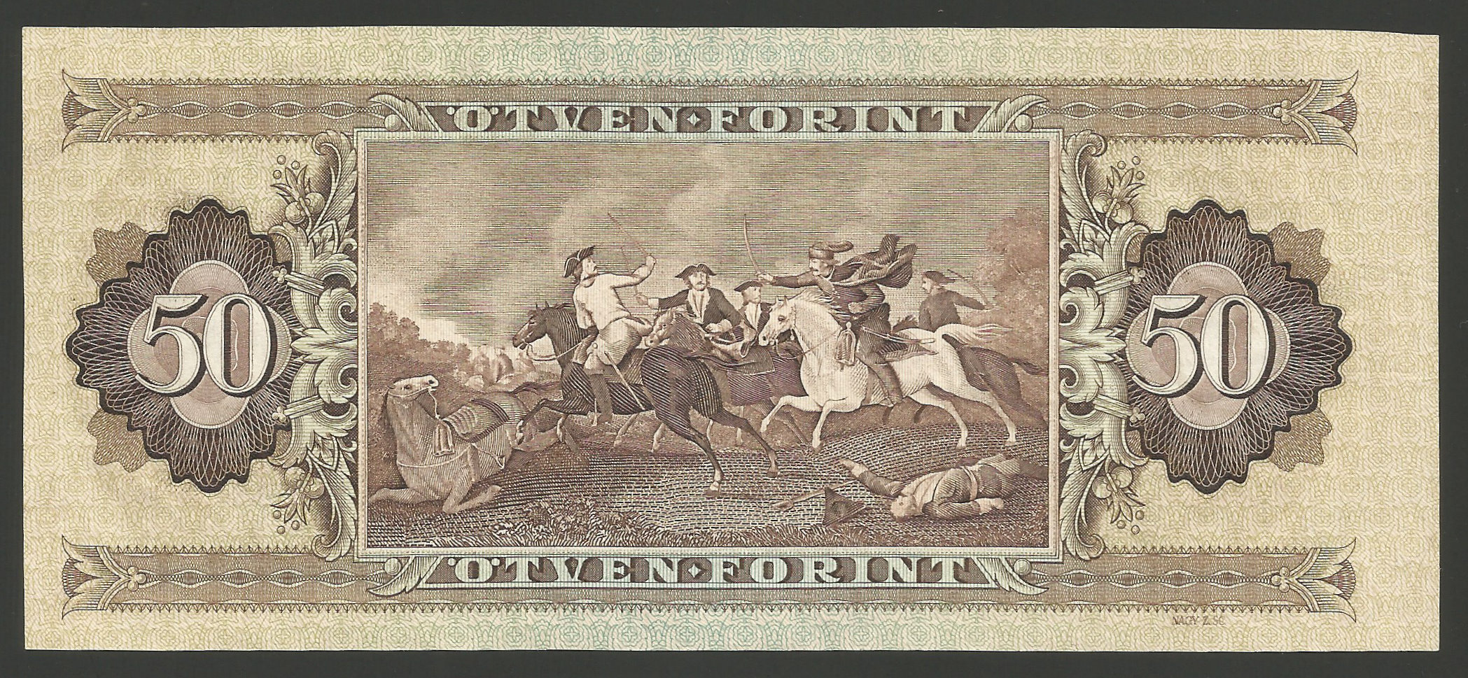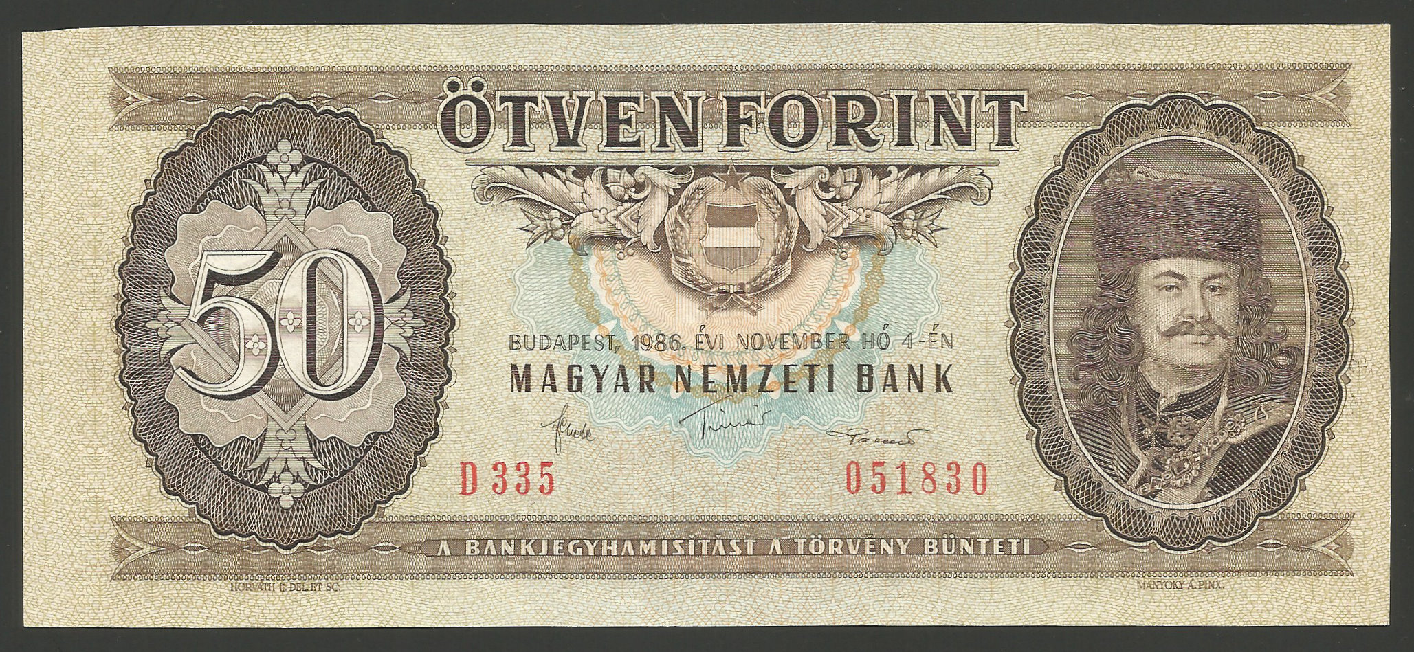 50 forint 1986 kiváló állapotban, egyetlen enyhe függőleges hajtás (le