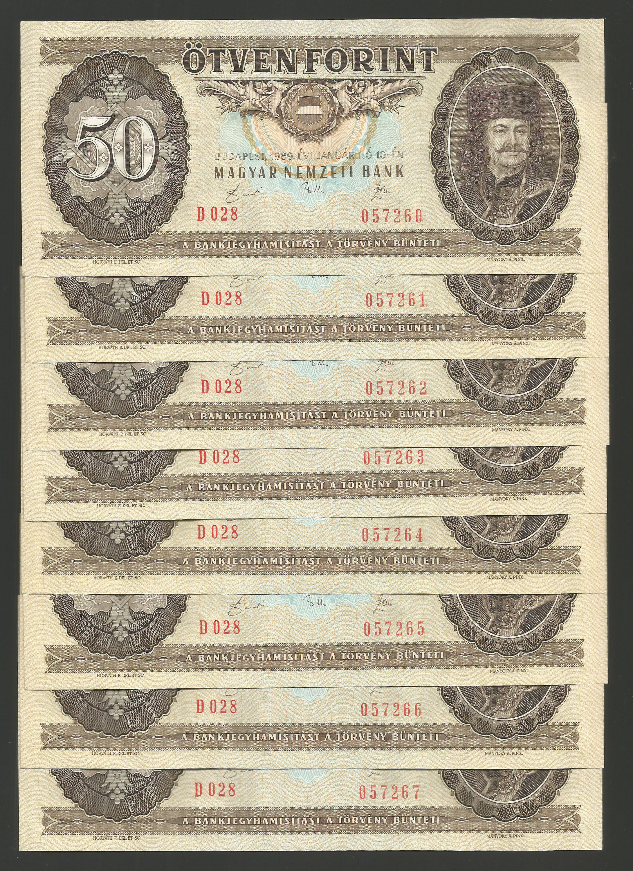 50 forint 1989 – sorszámkövető 8 db kiváló hajtatlan állapotban (pg