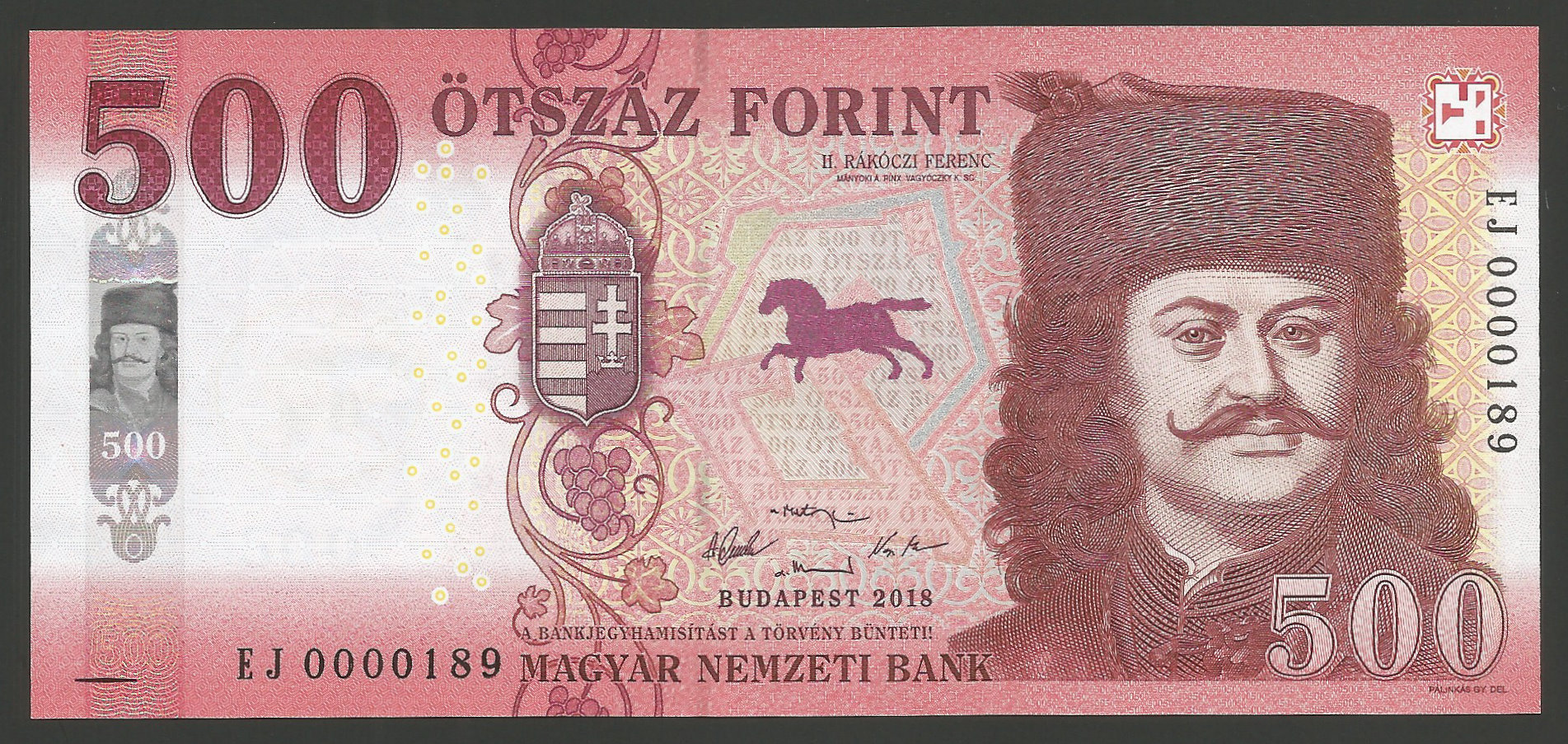 500 forint 2018 EJ – alacsony sorszám!