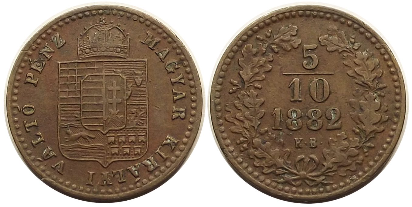 Réz 5/10 krajcár 1882 KB Ferenc József szép állapotban. (os