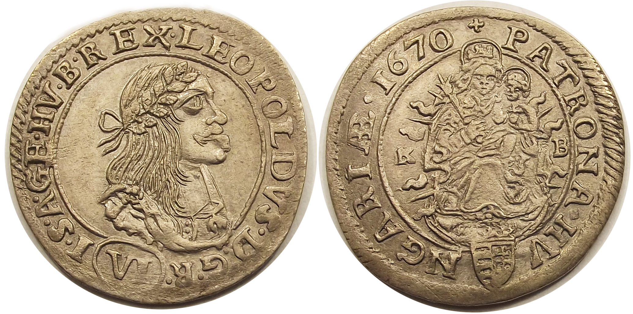 6 krajcár 1670 KB I. Lipót , kiváló állapotban. (gyr